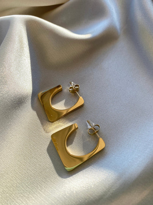 Gold Square Hoops - Handbag Earrings - Chunky Handbag Hoops -Square Hoop Earrings - Vintage Bold Earrings- Waterproof- Gift for her