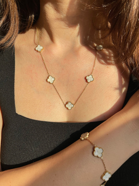 Black Clover Bracelet and Earrings Set, Four Leaf Clover Gold Herringbone Bracelet, Snake Chain Bracelet, Waterproof, Mother's Day Gift