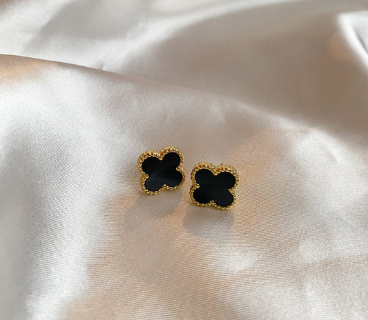 Clover Earrings, White Black Green Clover Studs, Four Leaf Clover Earrings, Mother’s day Gift for her, Waterproof, Mother of Pearl Earrings